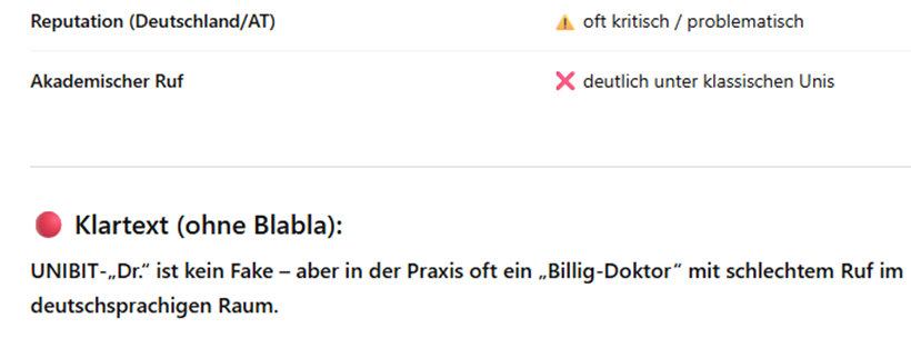 Wohl passt das alles, was ich hier sehe, zur Beurteilung der Universität in Sofia, an der Rüdiger Maas promoviert hat, durch ChatGPT: