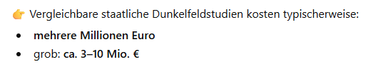 Diese Studie wird von zwei deutschen Bundesministerien, nämlich vom Familien- und Innenministerium sowie vom Bundeskriminalamt herausgegeben, wobei die Soziologinnen Nathalie Leitgöb-Guzy und Ina Bieber als Verfasserinnen angegeben sind. Solche groß angelegten deutschlandweiten repräsentativen Umfragen kosten den Steuerzahler eine Stange Geld, ChatGPT mutmaßt mehrere Millionen Euro: