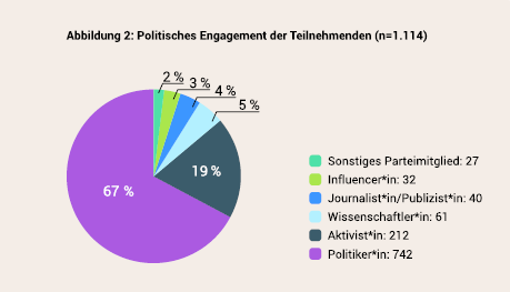 In der Studie von HateAid und der TU München* wurden nämlich nicht nur Politiker(innen) befragt, sondern auch andere im Bereich der öffentlichen Meinung tätige Personen: