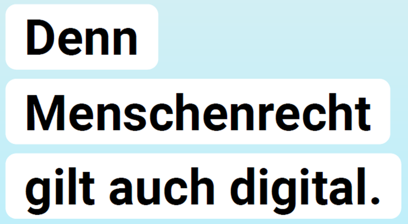 Die Verwendung des Singulars „Menschenrecht“ ist wohl nur ein Stilmittel. Mir ist erneut keine Stelle in der Literatur bekannt, die bestritten hätte, dass Menschenrechte (oder auch nur eines davon) im digitalen Kontext nicht gelten würden. – Was sind Menschenrechte? ChatGPT schreibt: