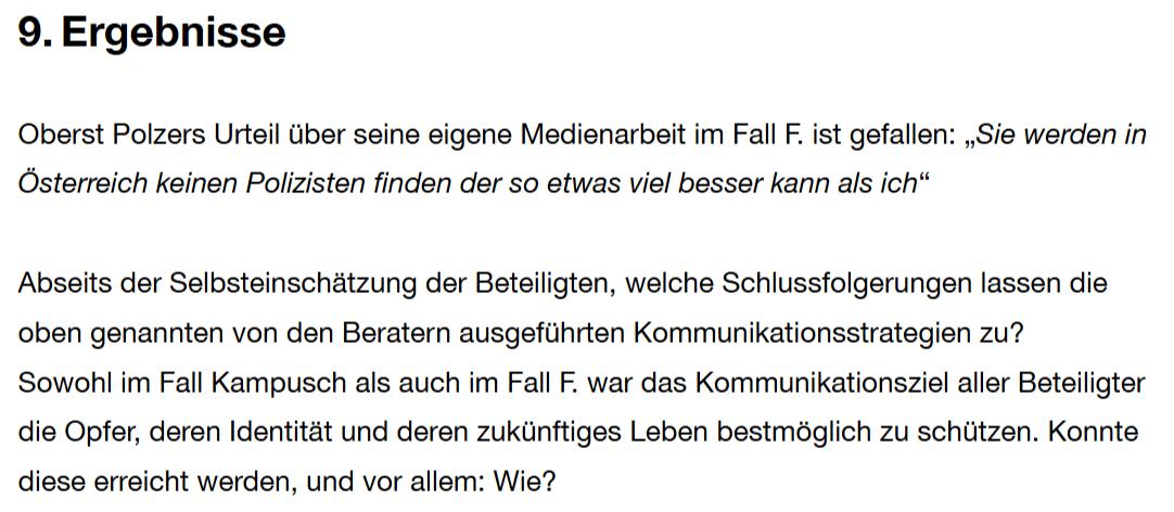 Master-Thesis von Martin Thür, „Krisenkommunikation im Fall Kampusch und im Fall F.“, DUK 2009, S. 69