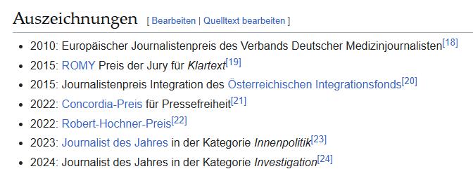 Anfang des Jahres (oder vielleicht schon Ende letzten Jahres) gab’s an der Uni Wien eine Vortragsserie zum Journalismus von Martin Thür. Wären Sie nur an einer der (Mini-)Vorlesungen mit offenen Diskussionen dabei gewesen, würden Sie NIE (!) an seiner Auszeichung in Bezug auf den Investigativjournalismus zweifeln. Ich bin damals ob meiner Erfahrungen mit dem Journalismus mit einer eher negativen Erwartung hineingegangen, war dann aber mehrfach überrascht, unter anderem über das Interesse der Student:innen und die vielen guten Fragen! (In der Mathematik kann ich mich an nichts vergleichbares erinnern 😉