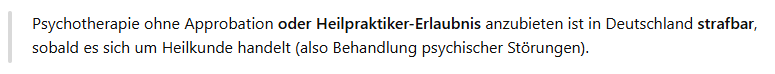 Sollte Rüdiger Maas tatsächlich psychotherapeutisch tätig gewesen sein, würde der Fall wohl eine neue Dimension bekommen: Es wäre dann vielleicht nicht nur Lebenslauf-Fälschung, sondern auch Kurpfuscherei Dazu ChatGPT: