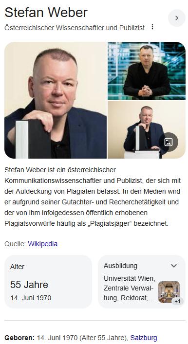 „Nach einer Abmahnung der Wirtschaftskammer, die ihn darauf hinwiesen hatte, dass die Ermittlung von Plagiaten laut Gewerbeordnung eine Sache von Detektiven sei, beantragte er eine Berechtigung zur Ausübung des ‚Sicherheitsgewerbes‘, die ihm auch erteilt wurde.“